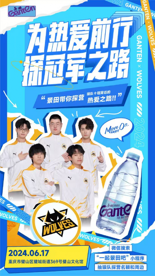 景田与KPL的合作始于对年轻消费群体的精准洞察。2024年,景田正式官宣成为KPL年度合作伙伴及重庆狼队年度赞助商。这一合作不仅涵盖了赛事官方指定饮用水的身份,还延伸至战队文化层面。景田在2025年夏季赛期间推出「景田鲤论」互动活动,用户通过参与话题讨论即有机会获得重庆狼队比赛门票,同时上线联名H5小游戏,将品牌元素与电竞战术策略深度融合,实现「线上互动 + 线下应援」的闭环。这种内容共创模式打破了传统赞助的单向传播,让用户从旁观者转变为参与者。景田还通过探营KPL十冠王重庆狼队,打造《热爱前行》纪录片,记录战队从训练到比赛的全流程,揭秘选手们「战至终章」的拼搏精神。该片在B站、微博等平台上线后,相关话题#景田助力KPL为热爱前行#迅速登上热搜,引发超5000万次讨论。